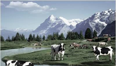 鏡頭越過云層推近高山深處,呈現(xiàn)草場豐盈、奶牛安然自得的健康狀態(tài)